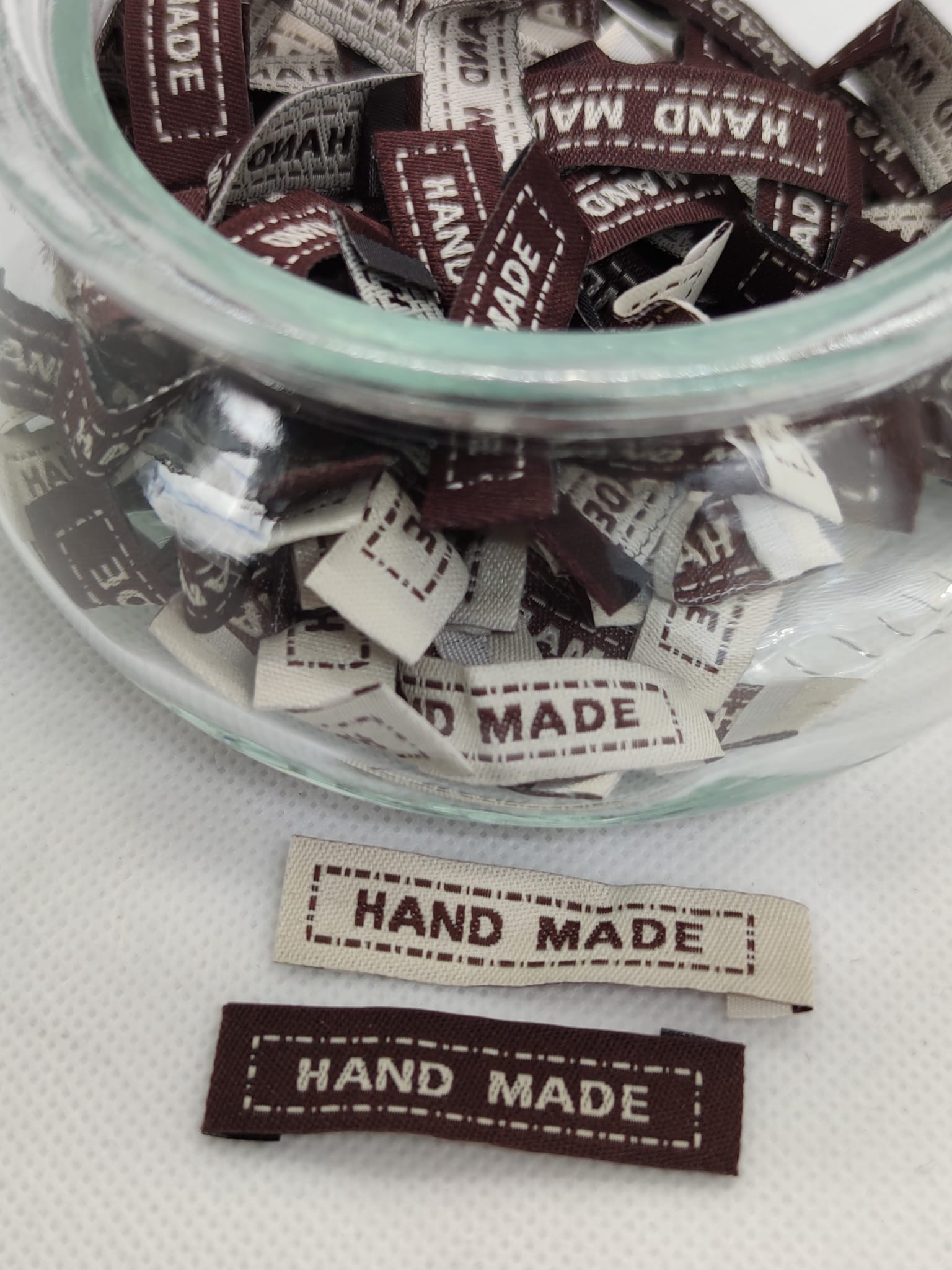 Tekstiilimerkki Hand made, 2 eri sävyä. Ommeltava.