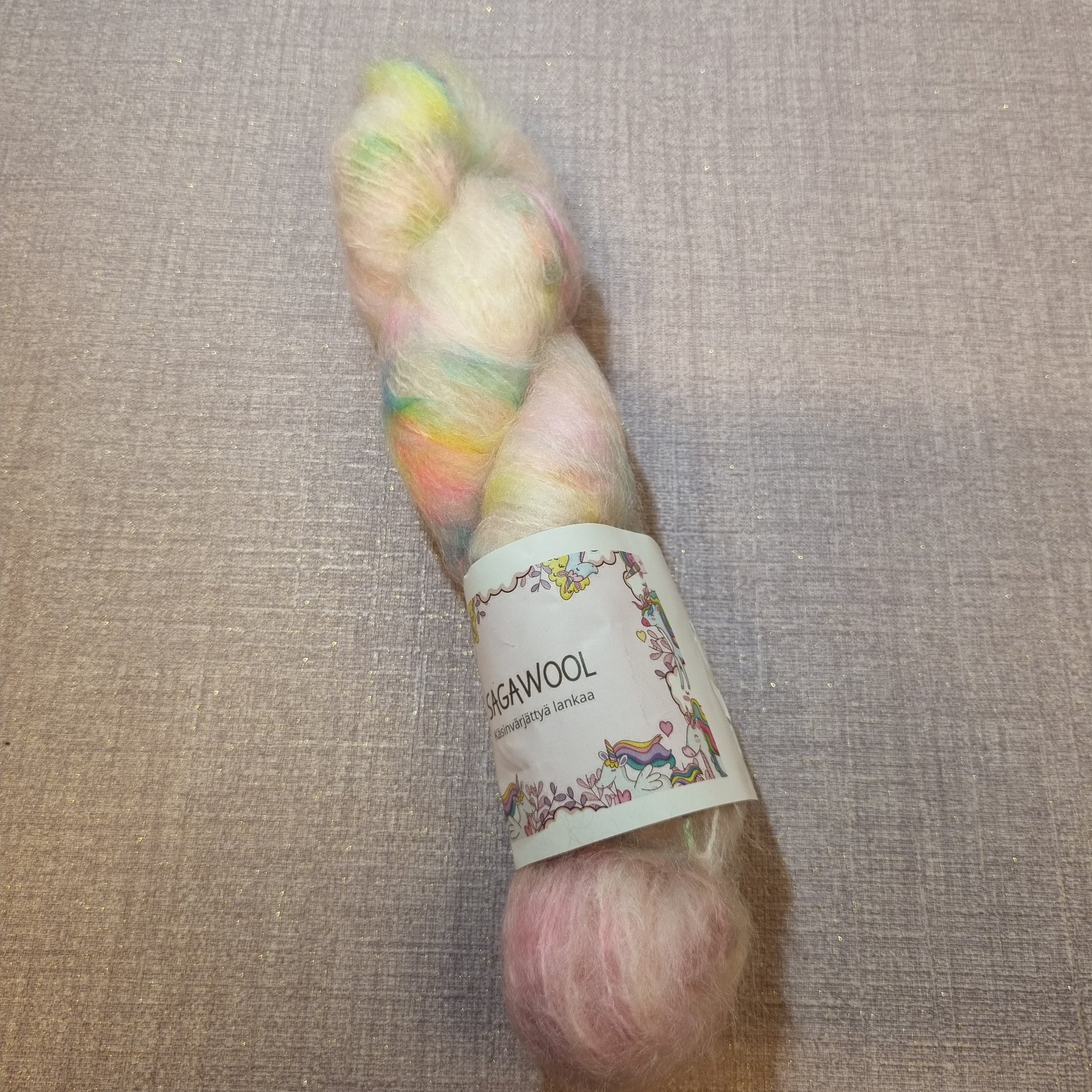 Ihanan muhkea uutuus. Lassi merinomohairsekoitus kaikkeen neulontaan. Isoilla puikoilla ilmavaa verkkomaista neulosta.