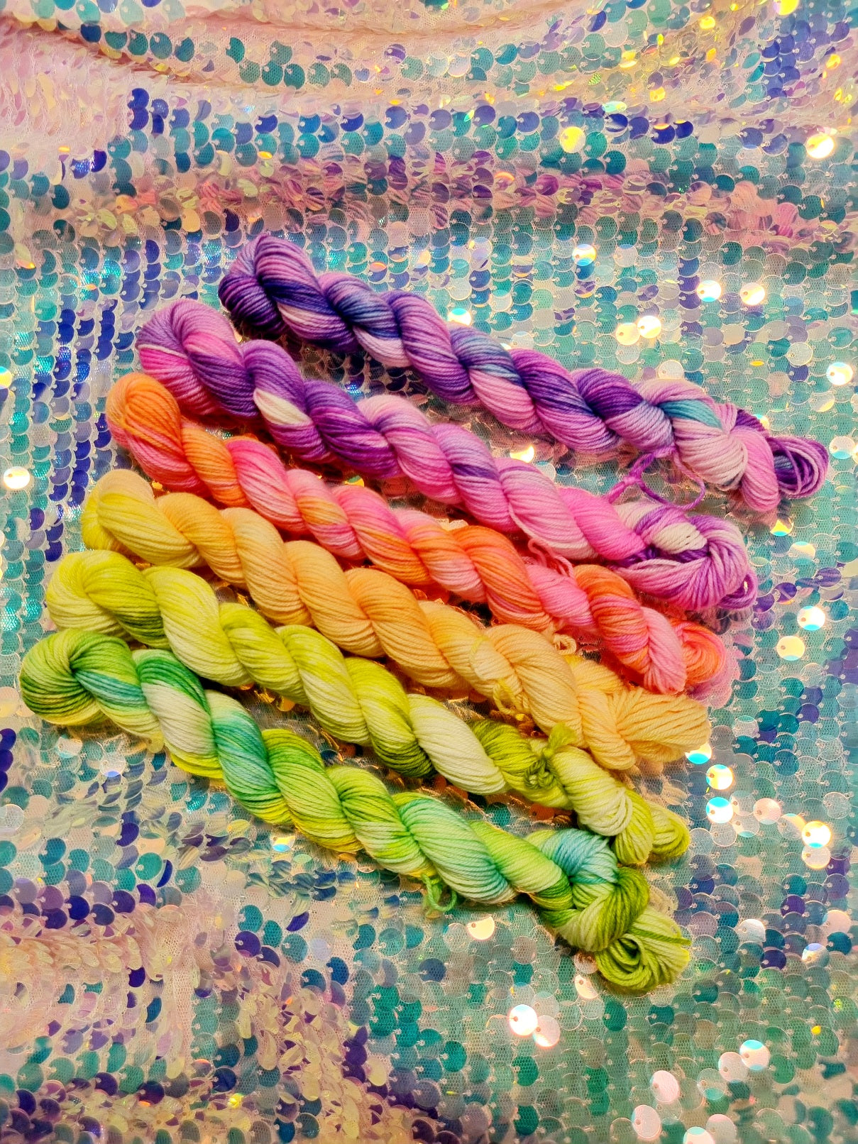 Minivyyhdit on värjätty käsin pienissä erissä, jolloin värivaihteluita voi tämän vuoksi esiintyä. Suosittellaan käsinpesua.