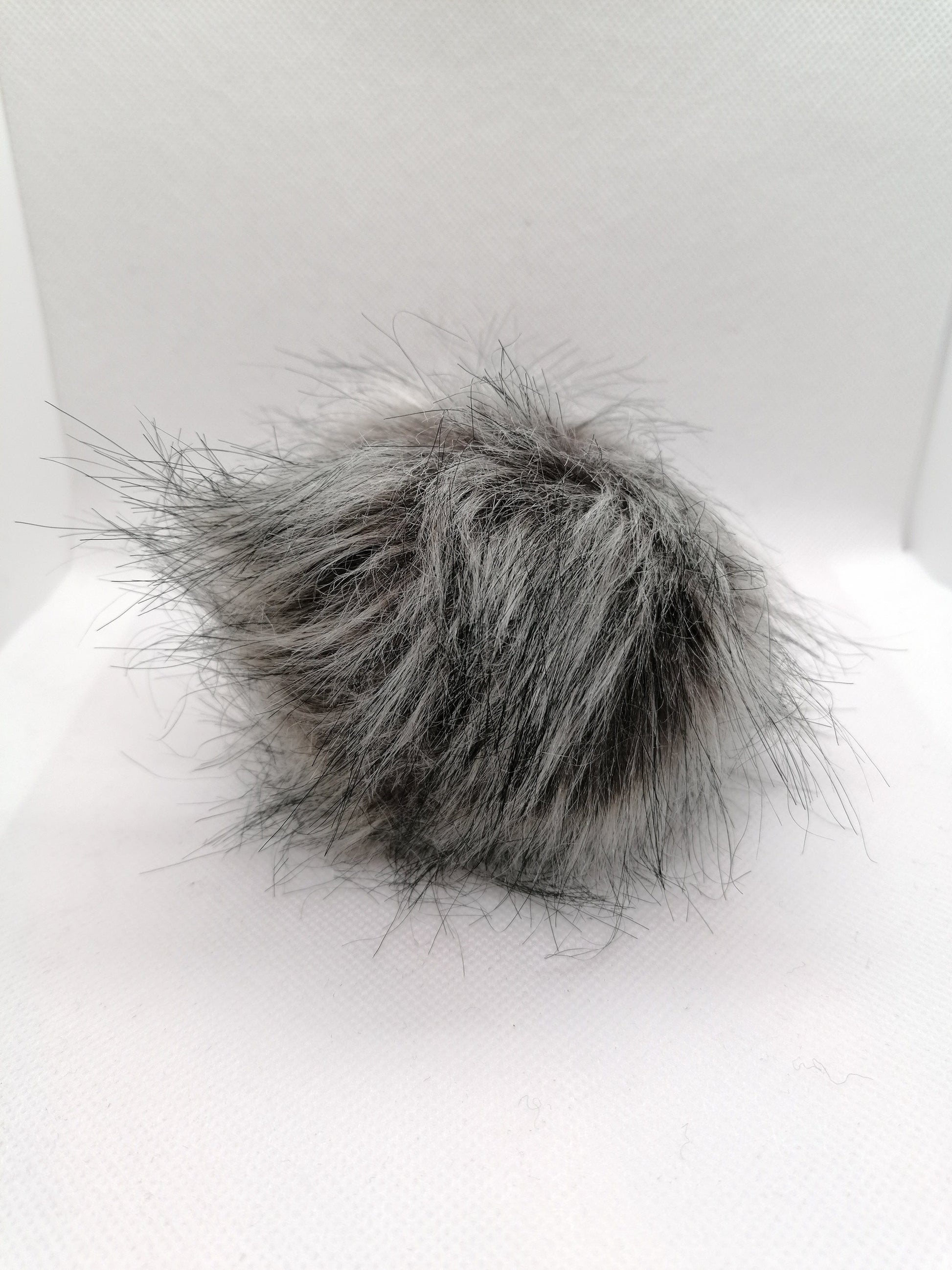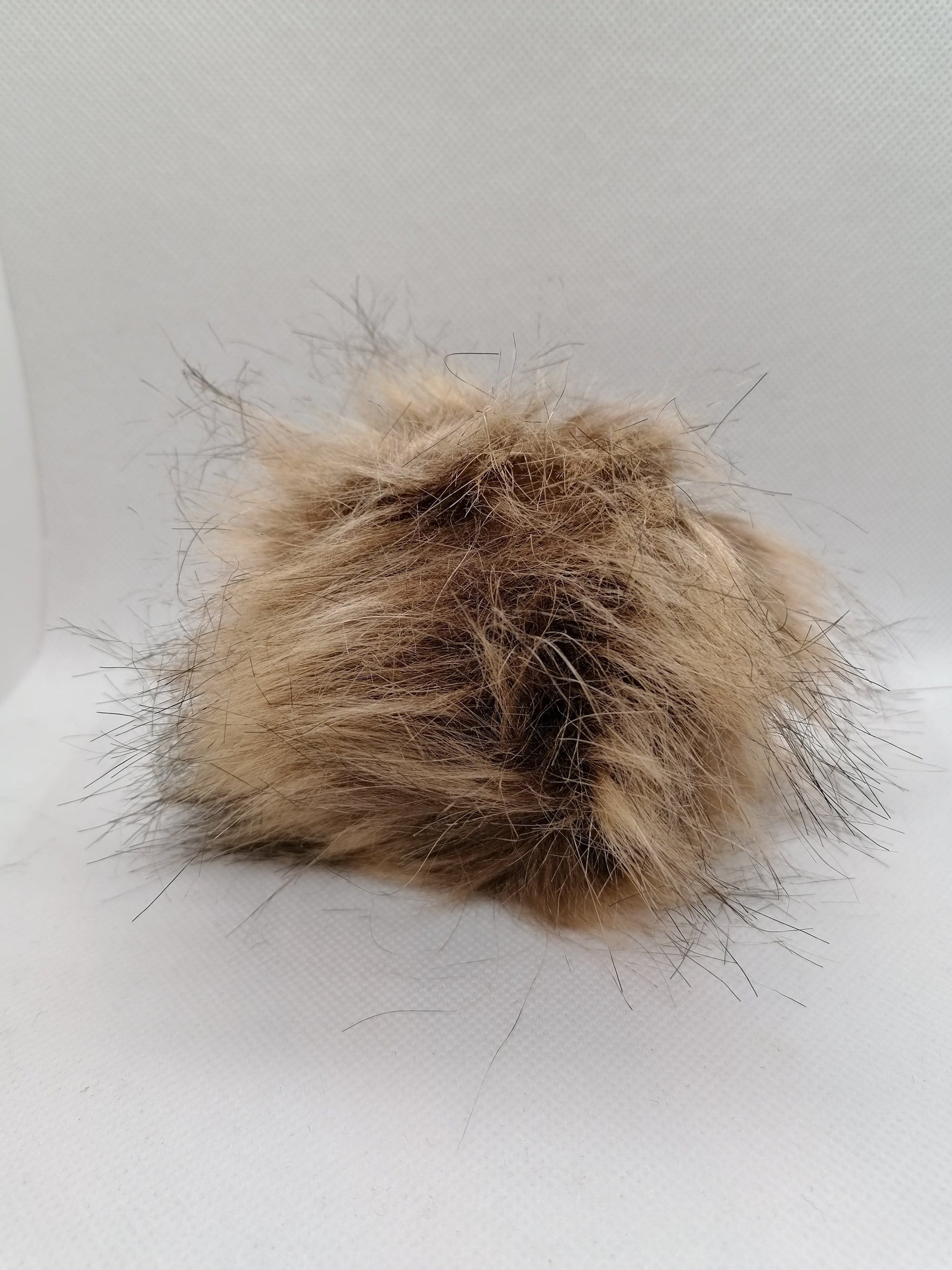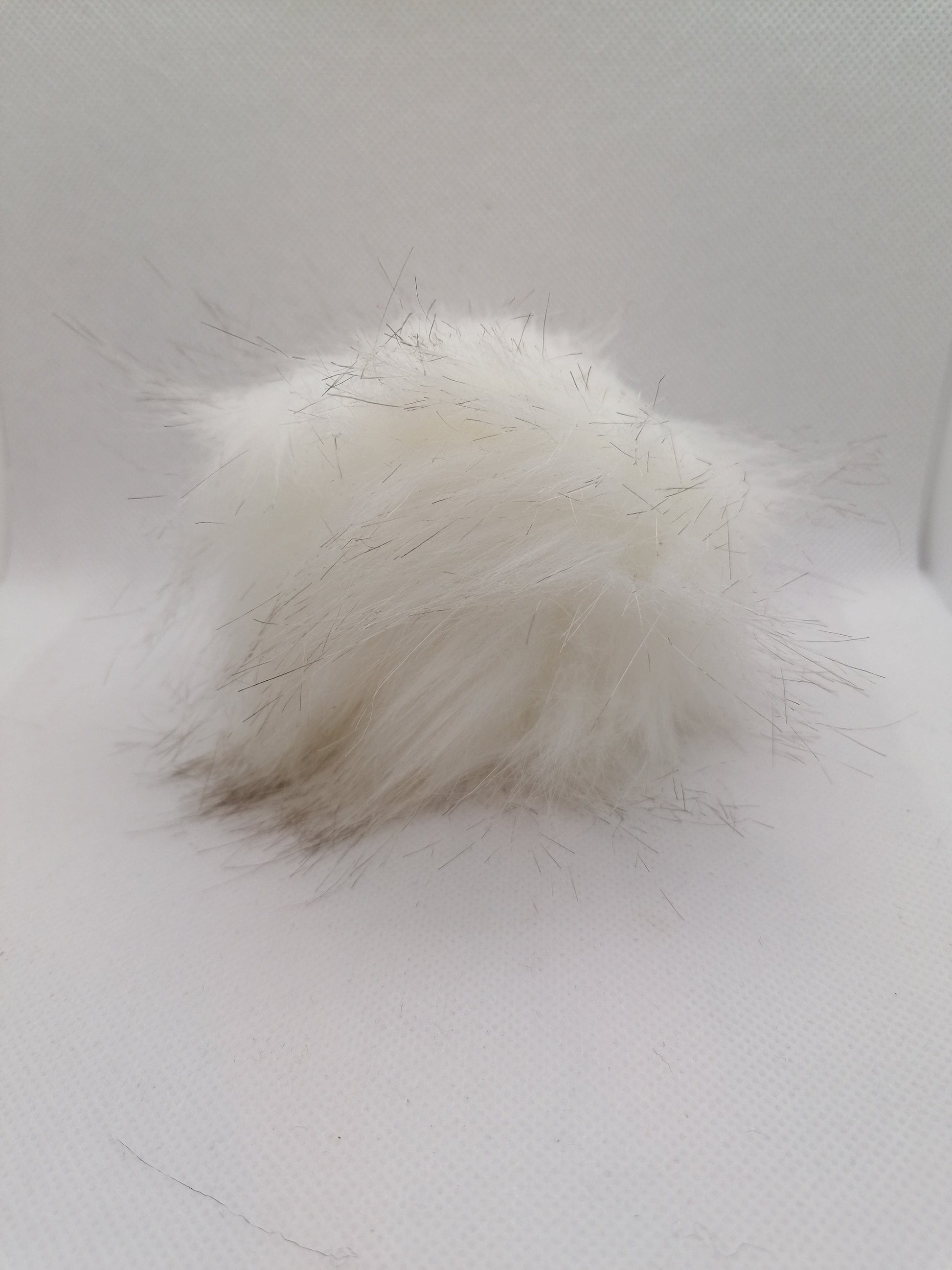 Iso tekoturkistupsu, jonka halkaisija 10cm. Tupsussa kiinnityslenkki, josta tupsun voi kiinnittää napilla tai ompelemalla.