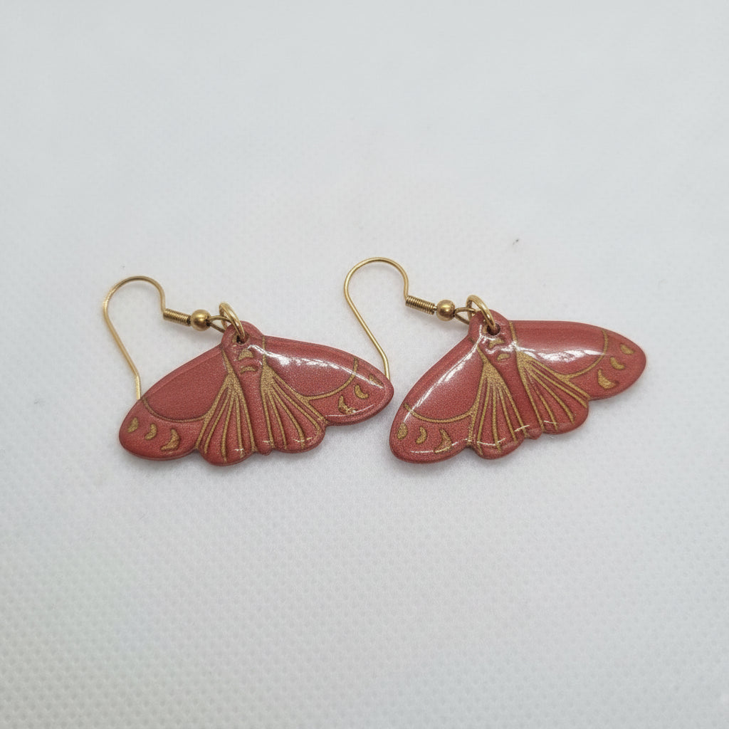 Fimo massasta käsityönä tehdyt kiitäjä korvakorut. Päällä epoksi antamassa kiiltoa ja kestävyyttä.