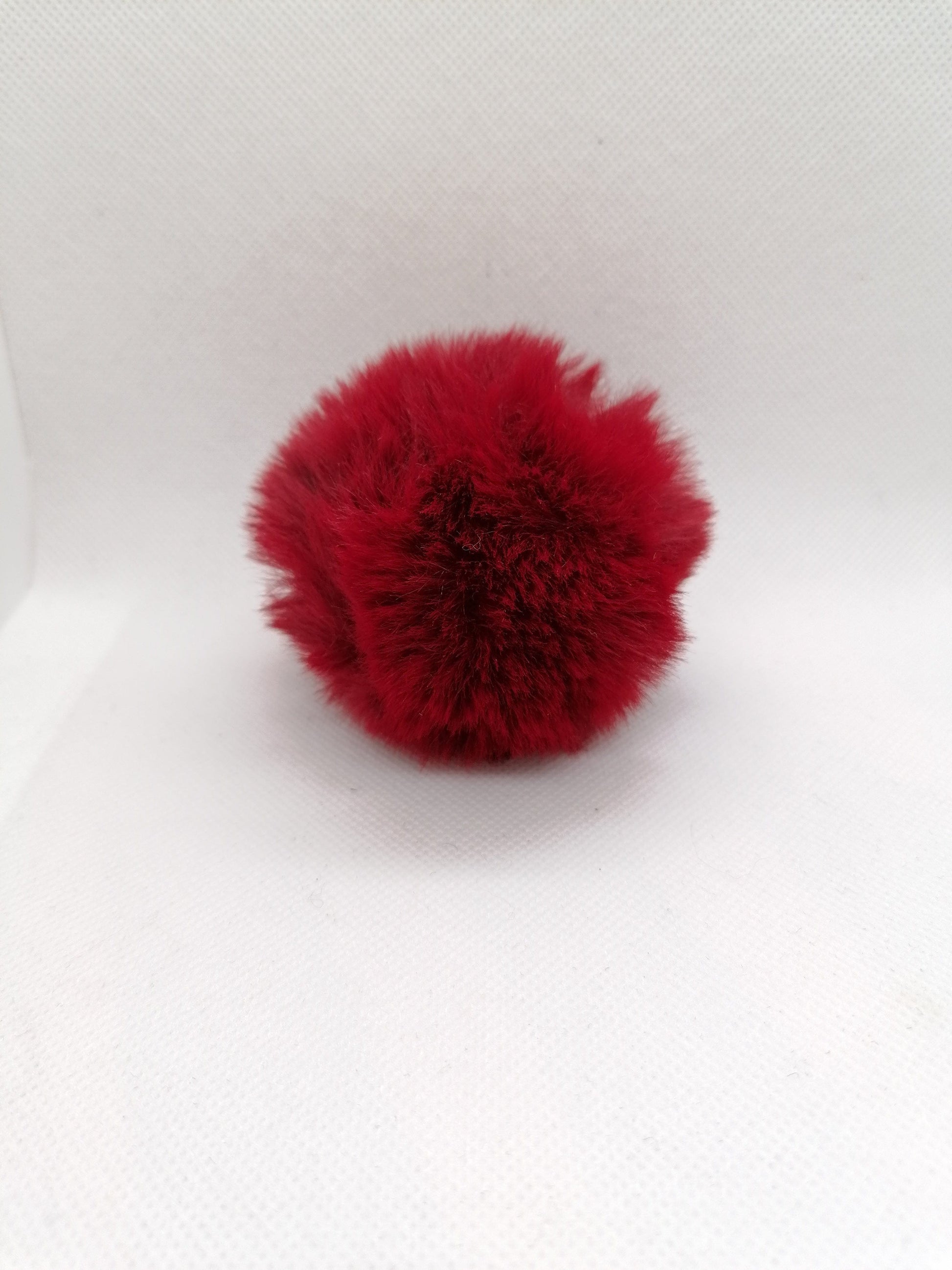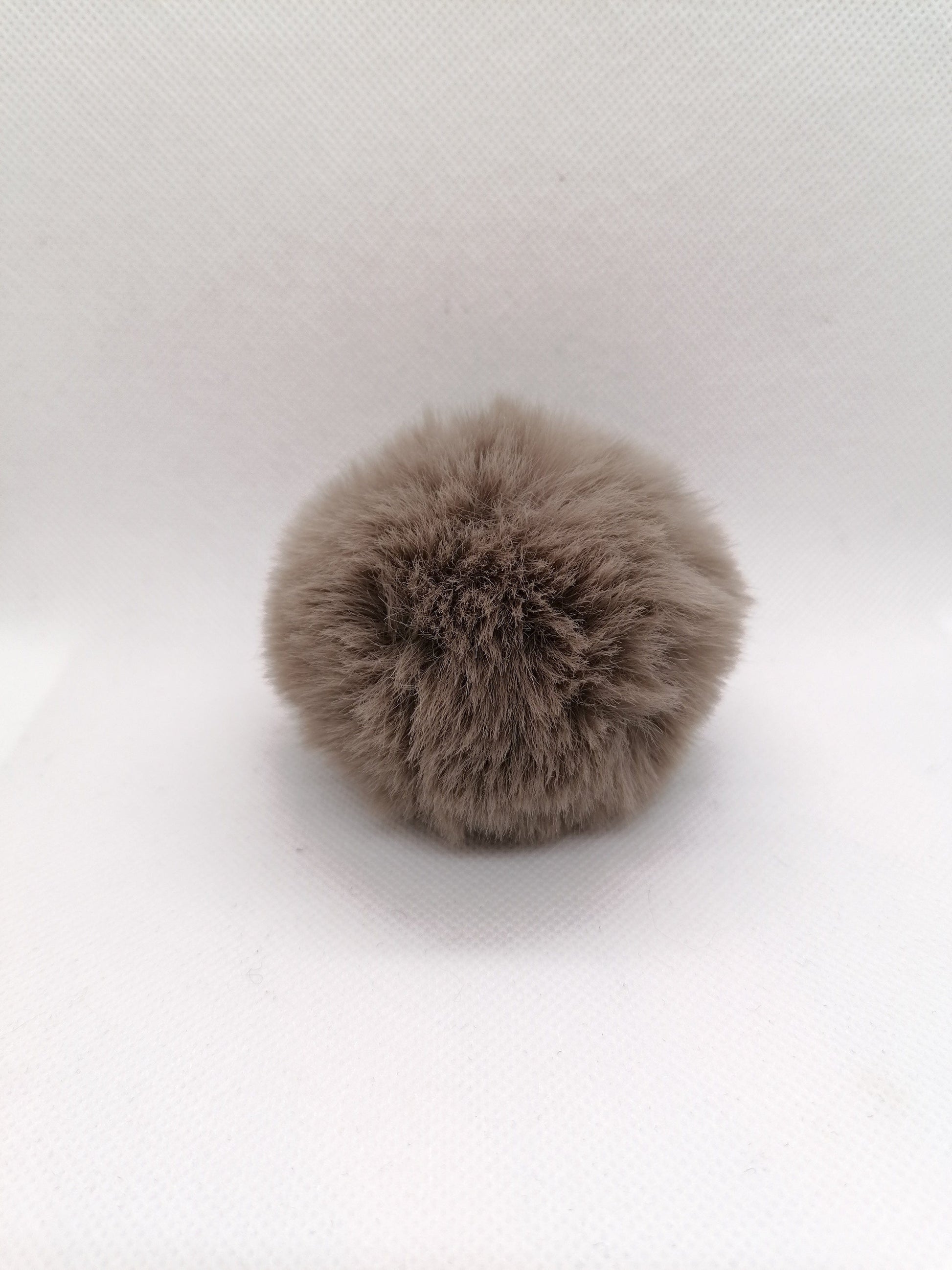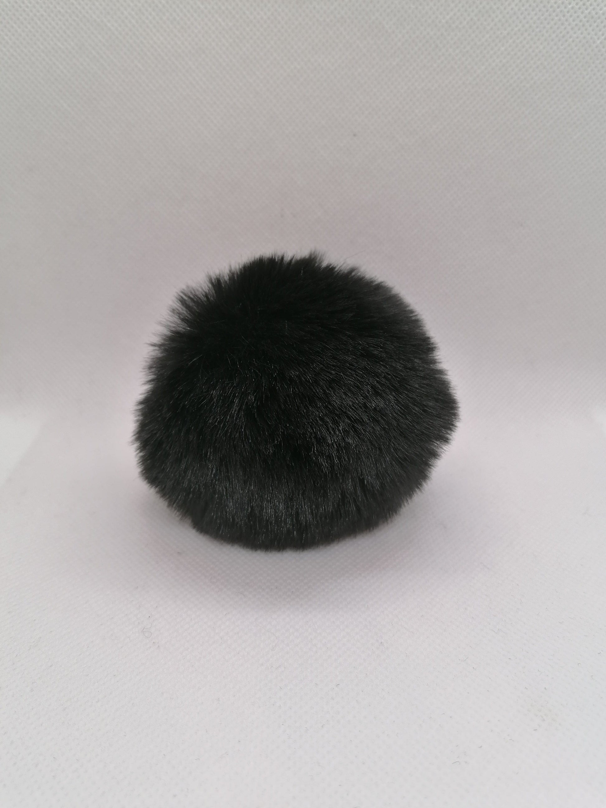 Pieni tekoturkistupsu, jonka halkaisija on 7cm. Tupsussa kuminauha, josta voit kiinnittää tupsun napilla tai ompelemalla.