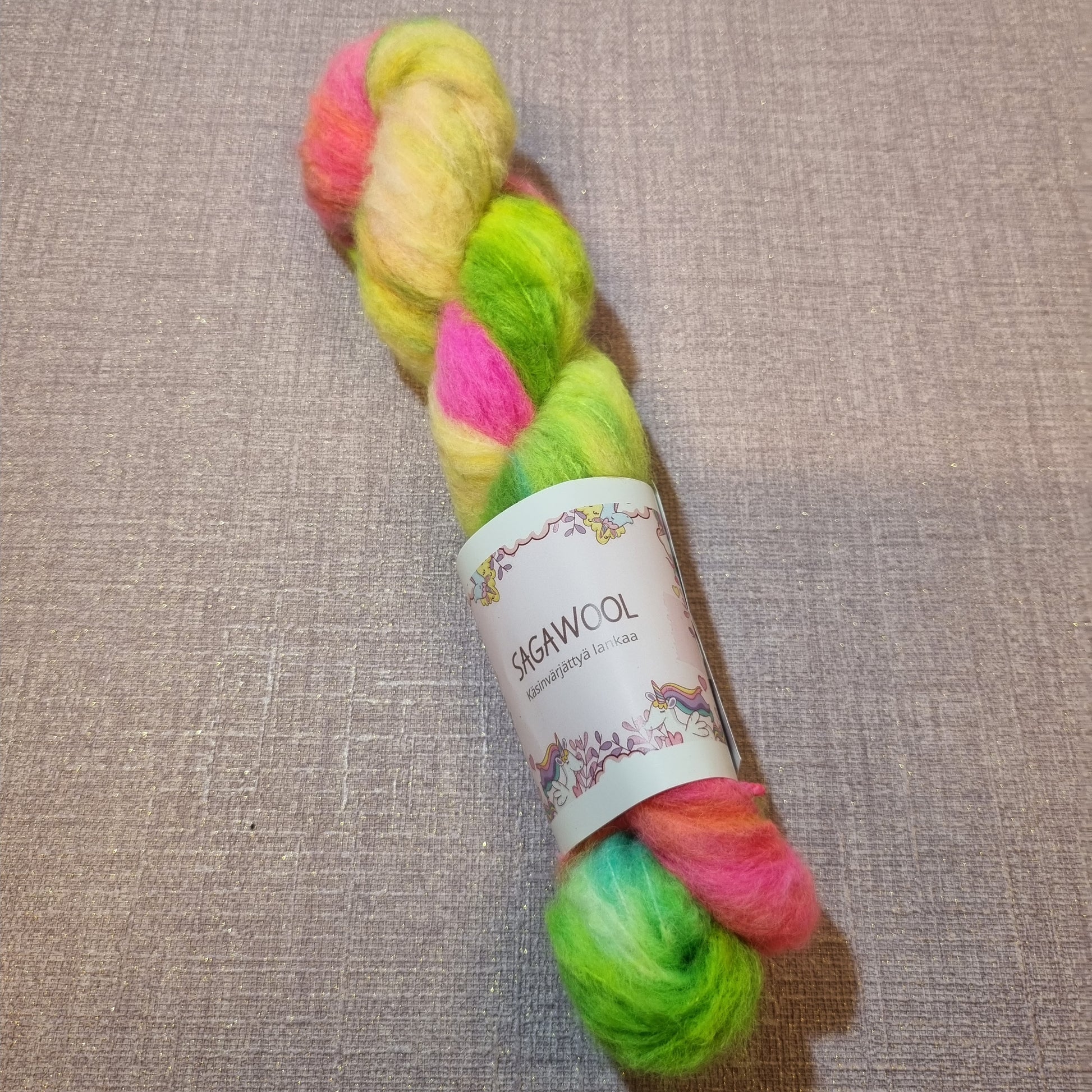 Lanka kuin pilvenhattara, kevyt ja pörröinen. Tästä neulot asusteet ja neuleet, lankaa voidaan myös neuloa toisen langan kanssa esim.merinon.