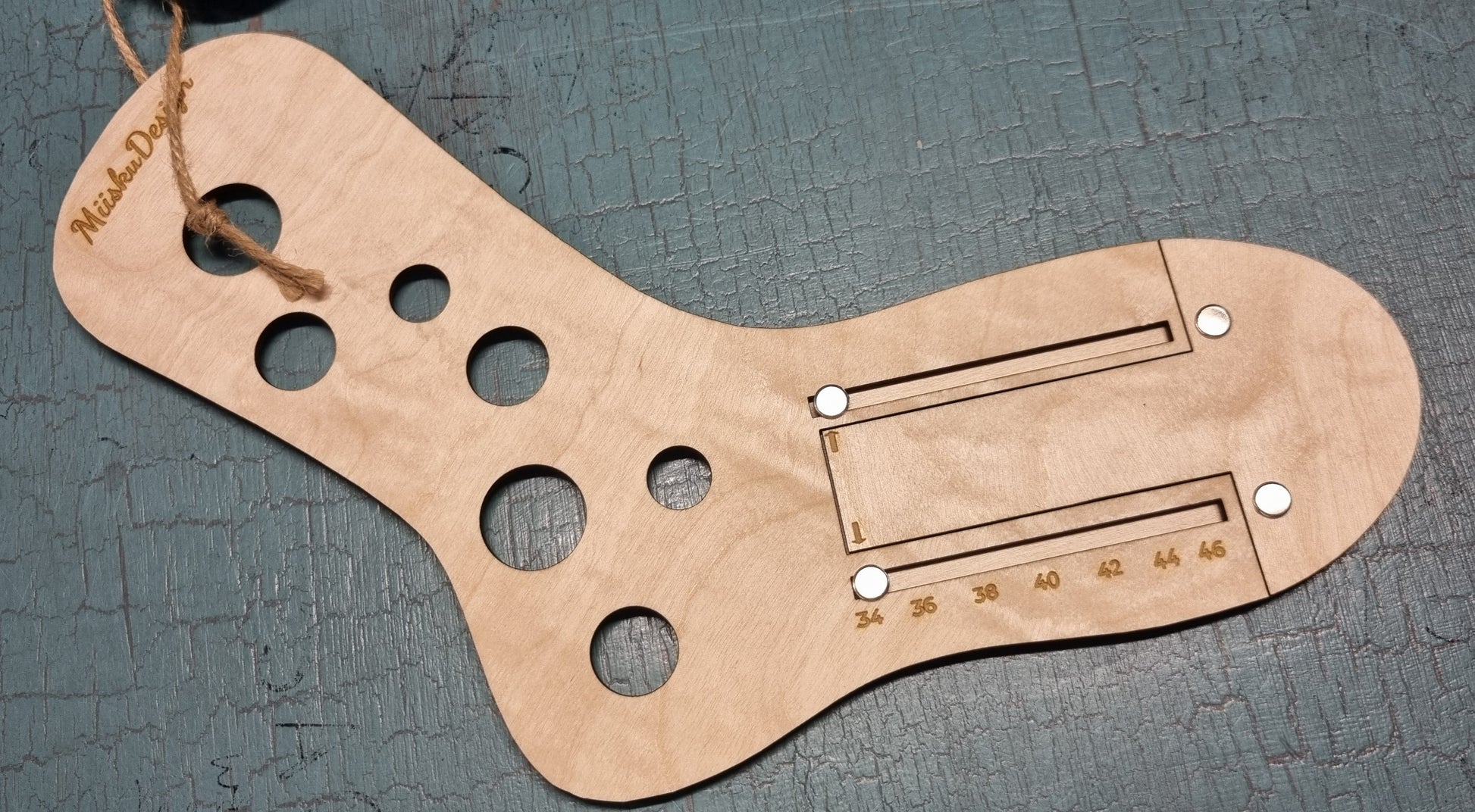 Kotimaisesta koivuvanerista valmistettu sukkablokki, 1kpl.