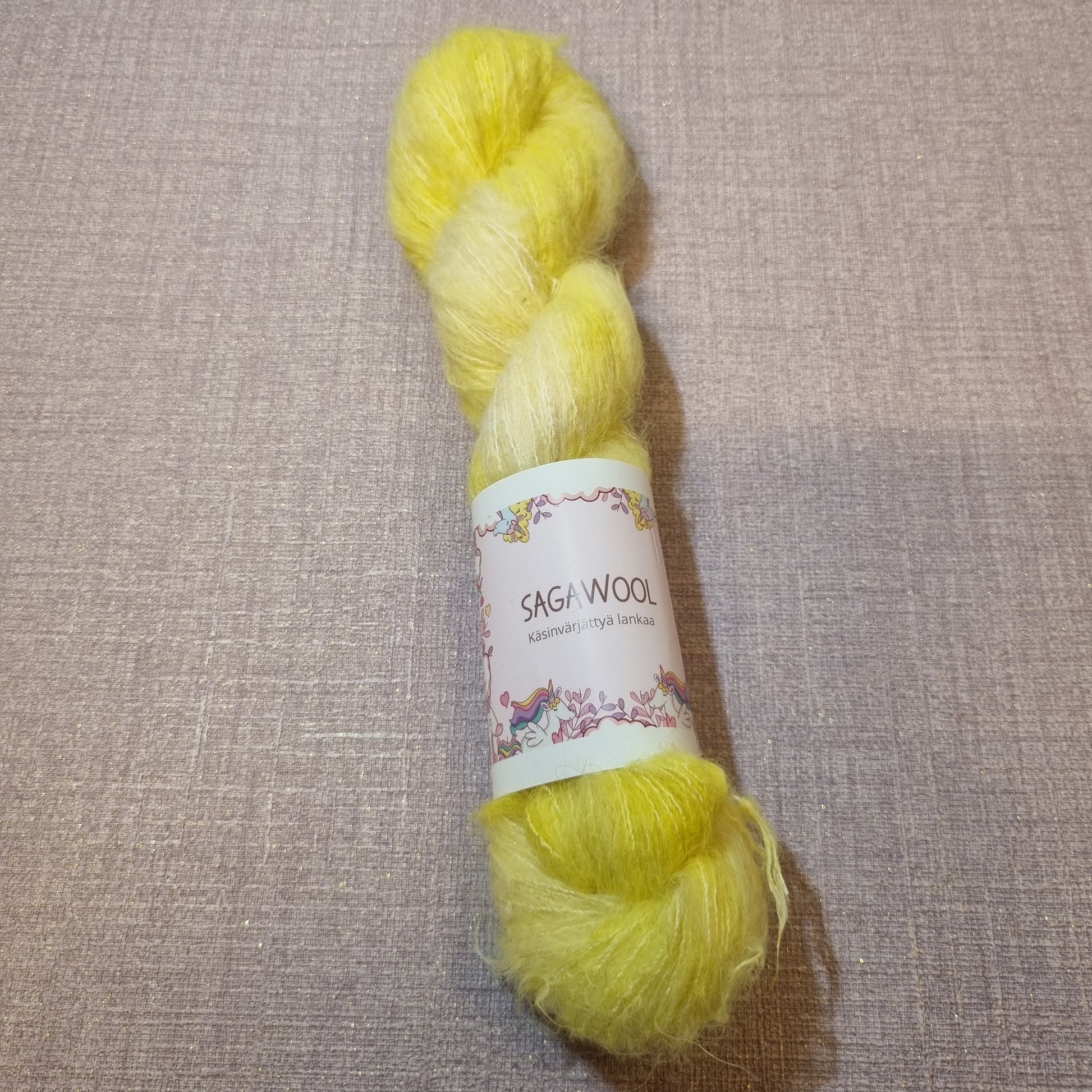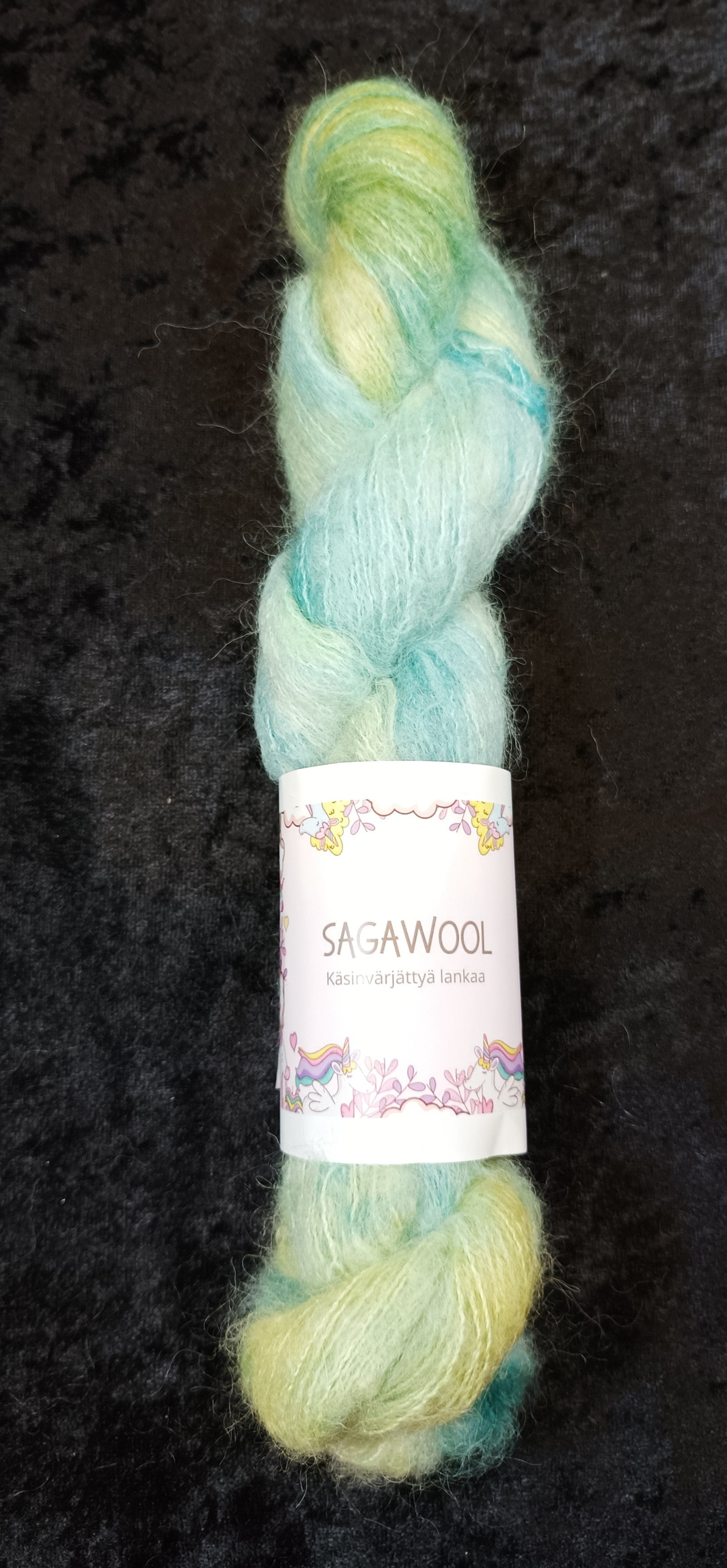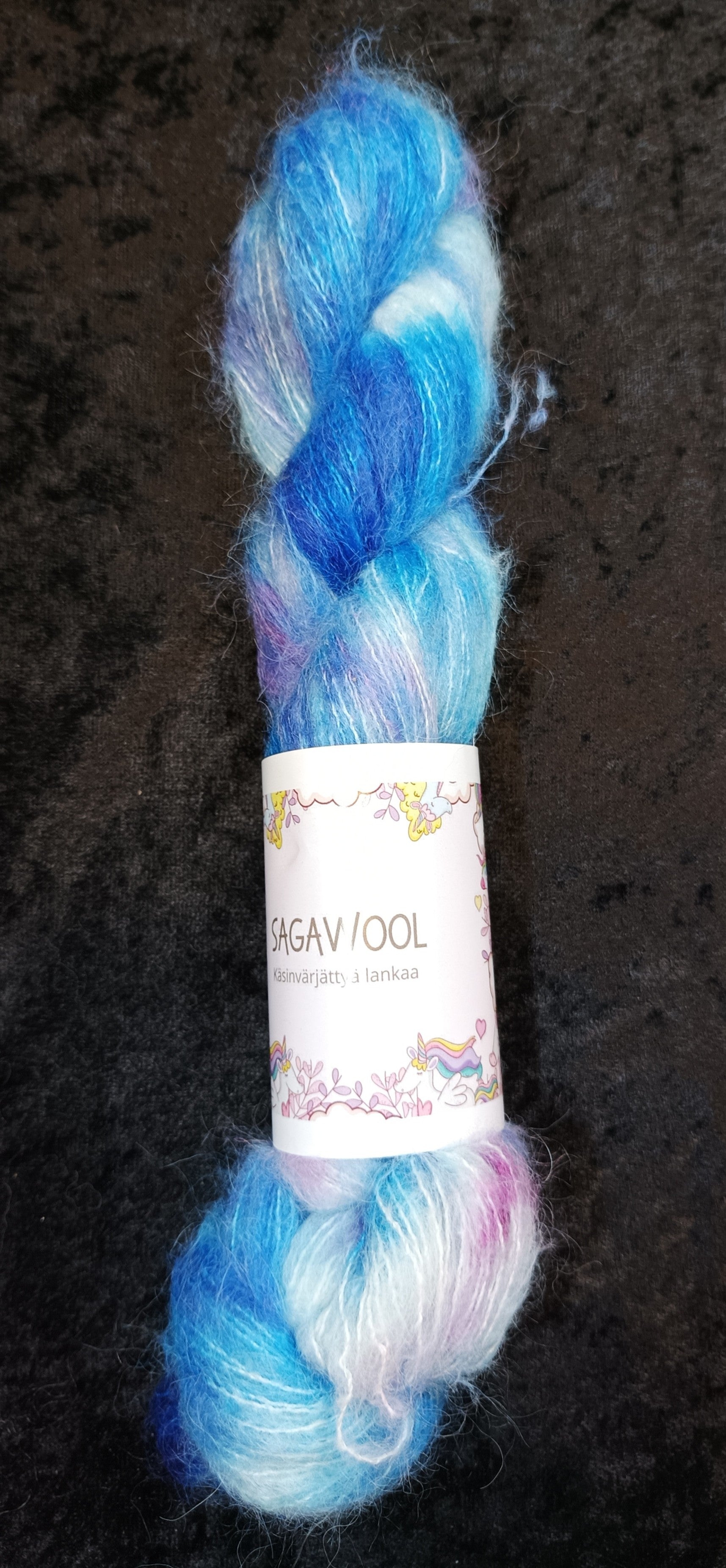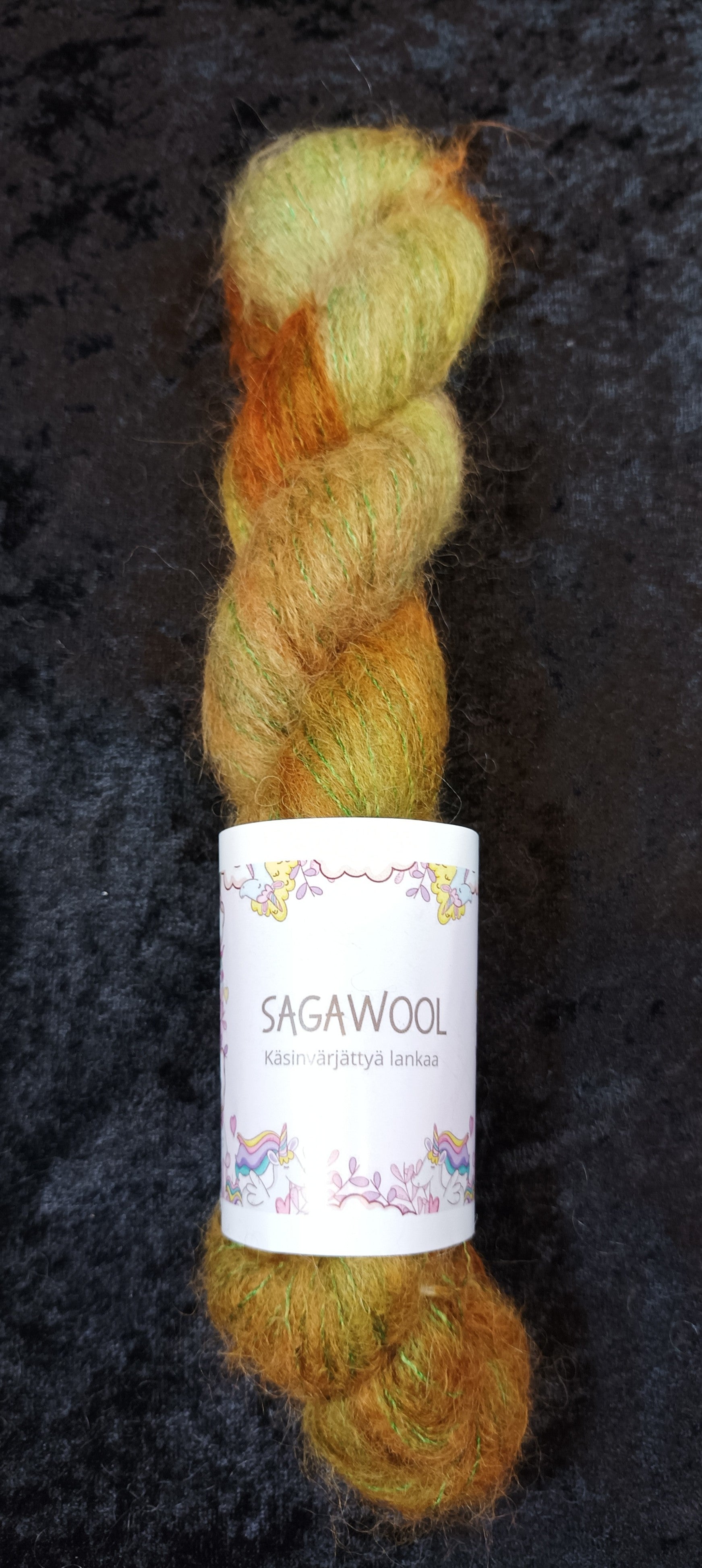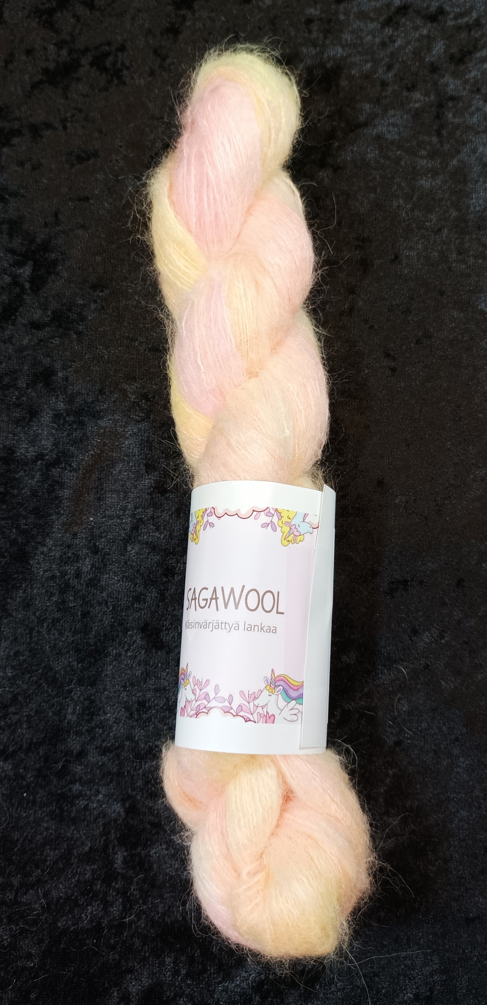 Alpakka-silkki on hyvin luonnollinen lanka sillä se sisältää ainoastaan baby alpakan villaa ja mulberry silkkiä. Yhdessä vyyhdissä on lankaa 50g/300m. Tästä riittää reilusti esim.pipoon ja lapasiin vaikka jonkin toisen langan kera. Lanka on äärimmäisen kevyttä ja unelman pehmeää. Itse ehdin tätä lankaa jo testata ja lanka ei mielestäni pölissyt juurikaan. Lanka on värjätty käsin ja pesty villapesuaineella. Ei konepesua.