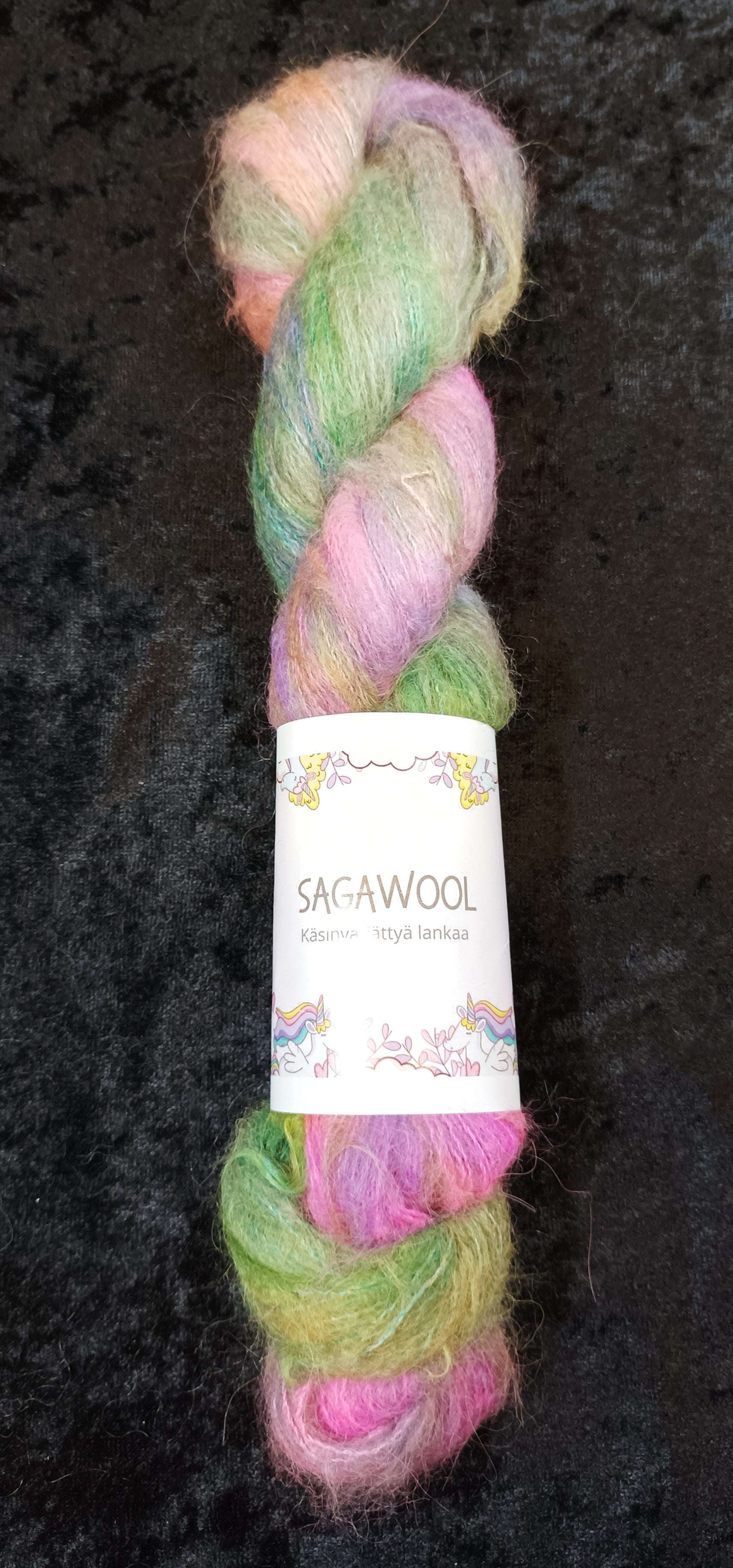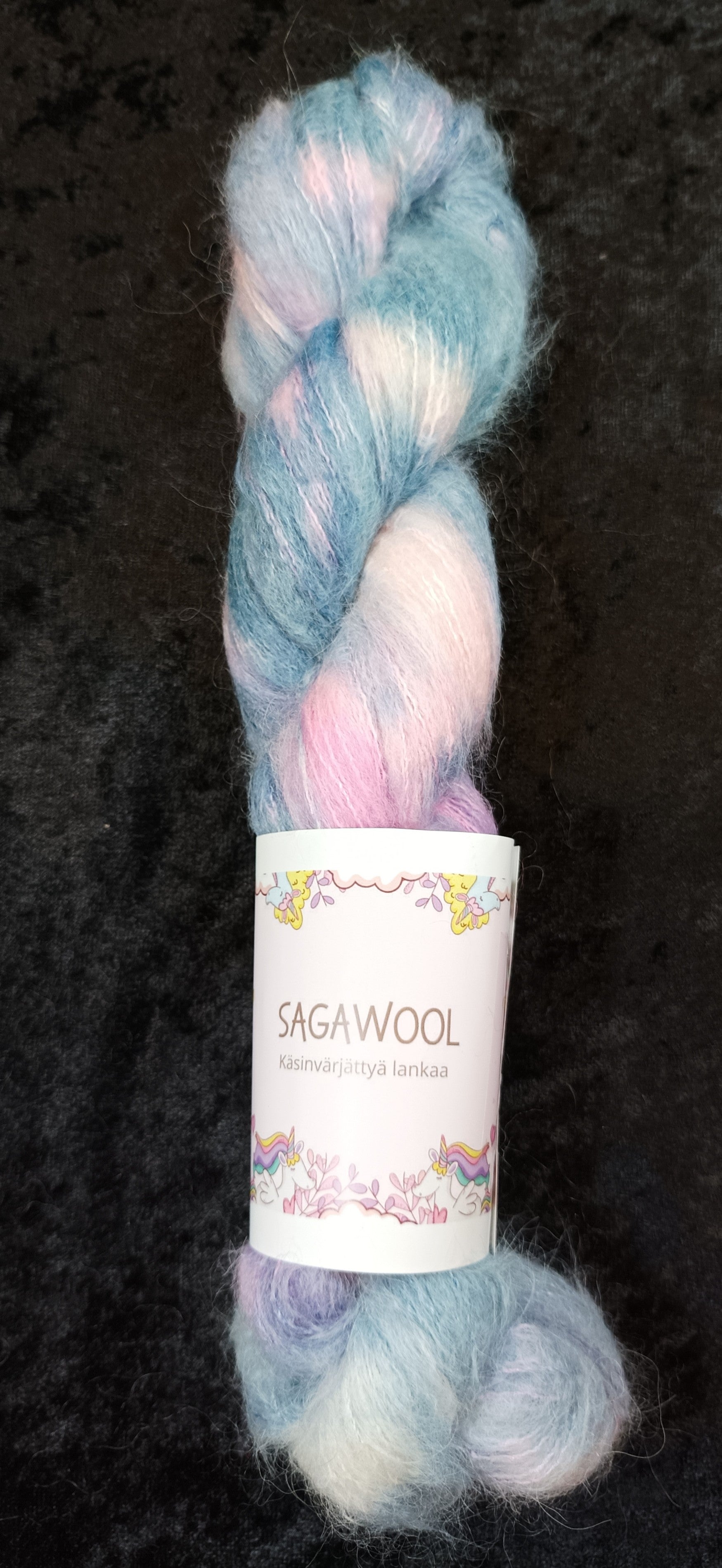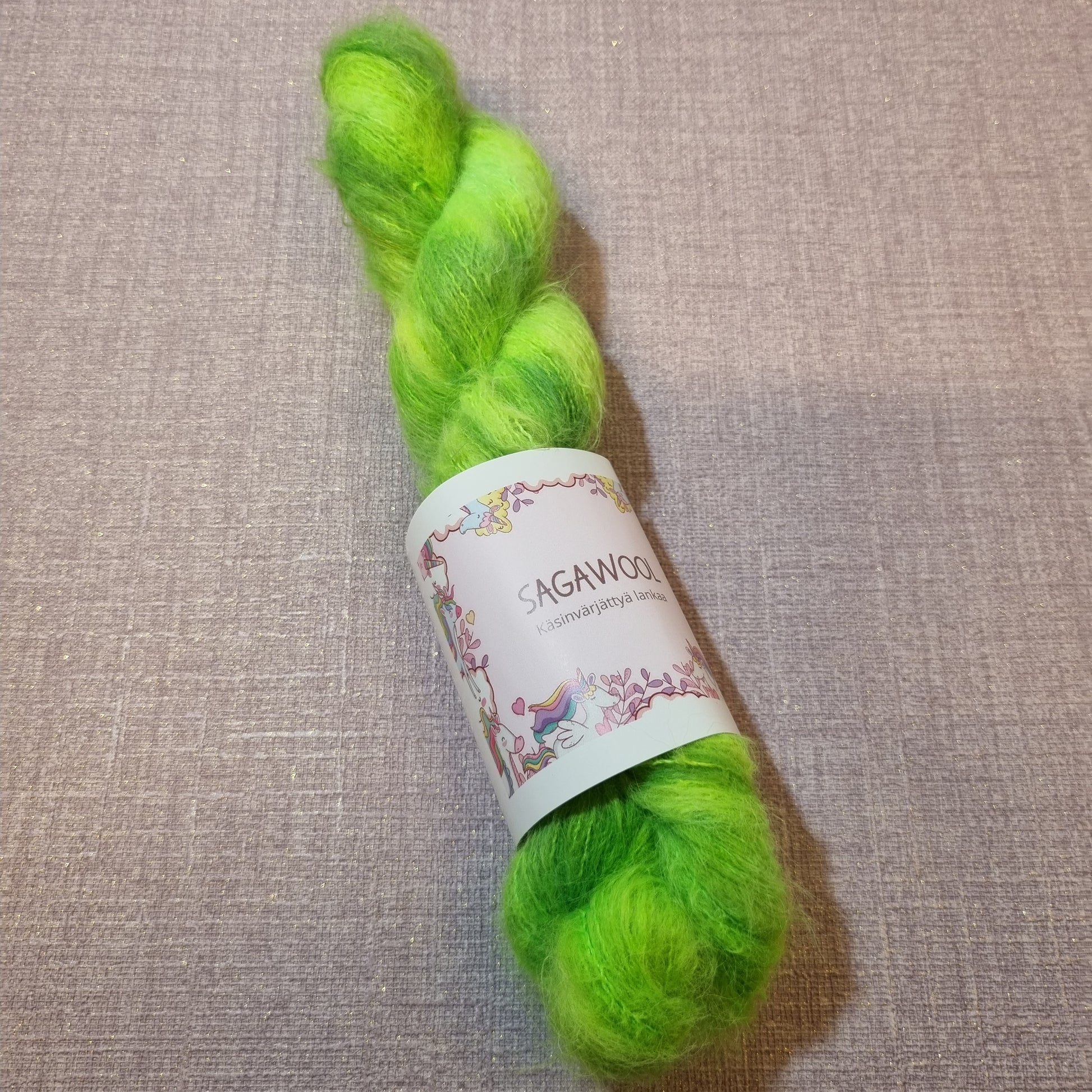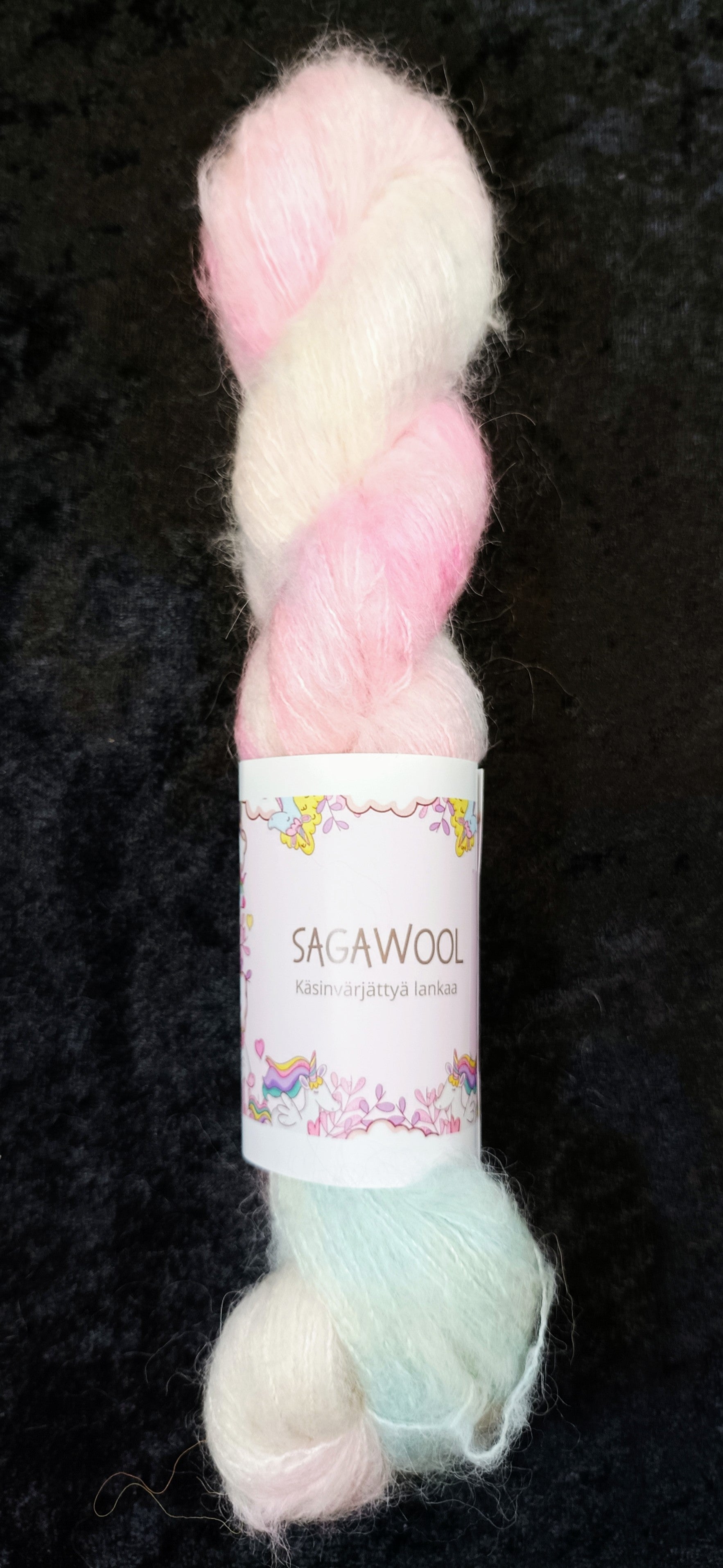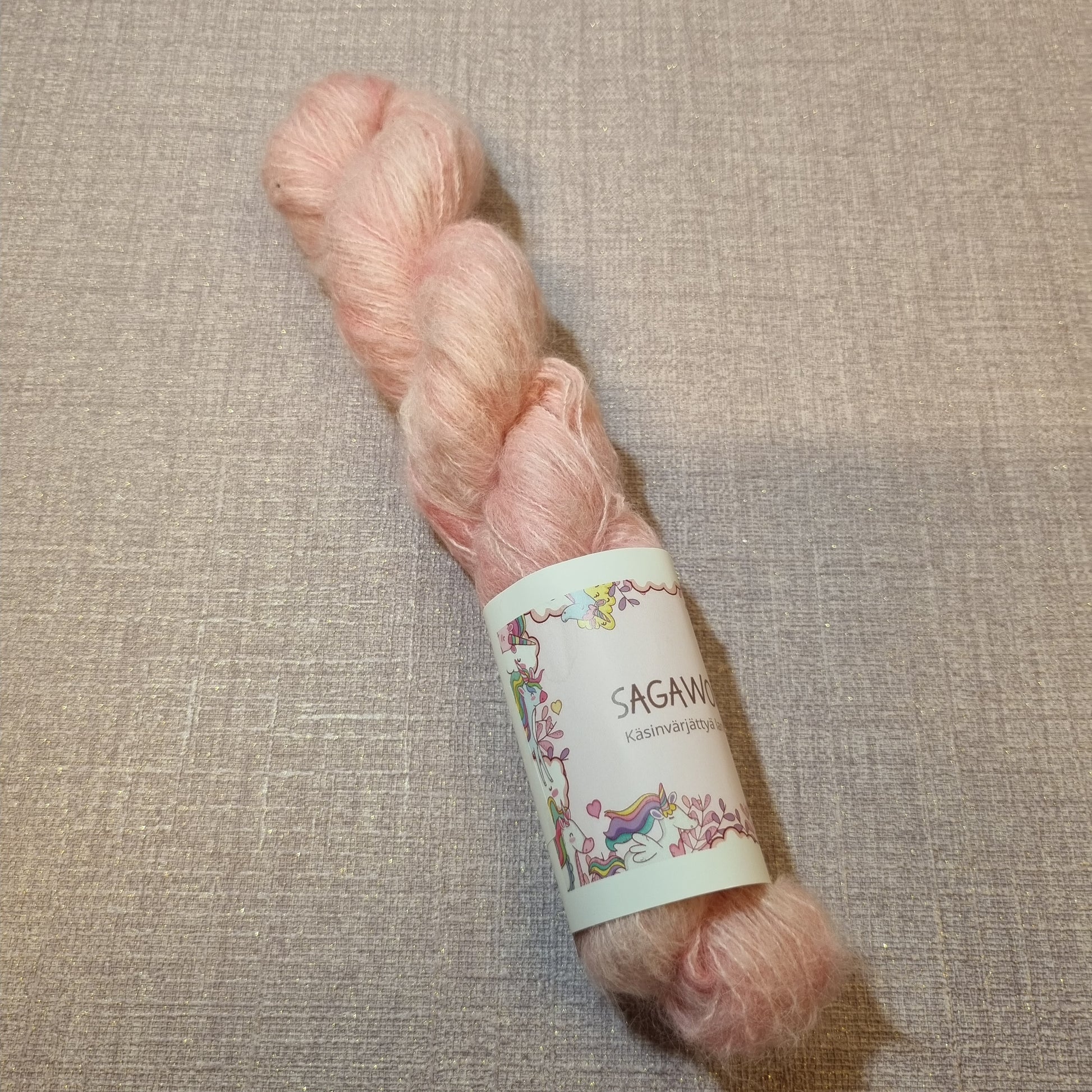 Alpakka-silkki on hyvin luonnollinen lanka sillä se sisältää ainoastaan baby alpakan villaa ja mulberry silkkiä. Yhdessä vyyhdissä on lankaa 50g/300m. Tästä riittää reilusti esim.pipoon ja lapasiin vaikka jonkin toisen langan kera. Lanka on äärimmäisen kevyttä ja unelman pehmeää. Itse ehdin tätä lankaa jo testata ja lanka ei mielestäni pölissyt juurikaan. Lanka on värjätty käsin ja pesty villapesuaineella. Ei konepesua.