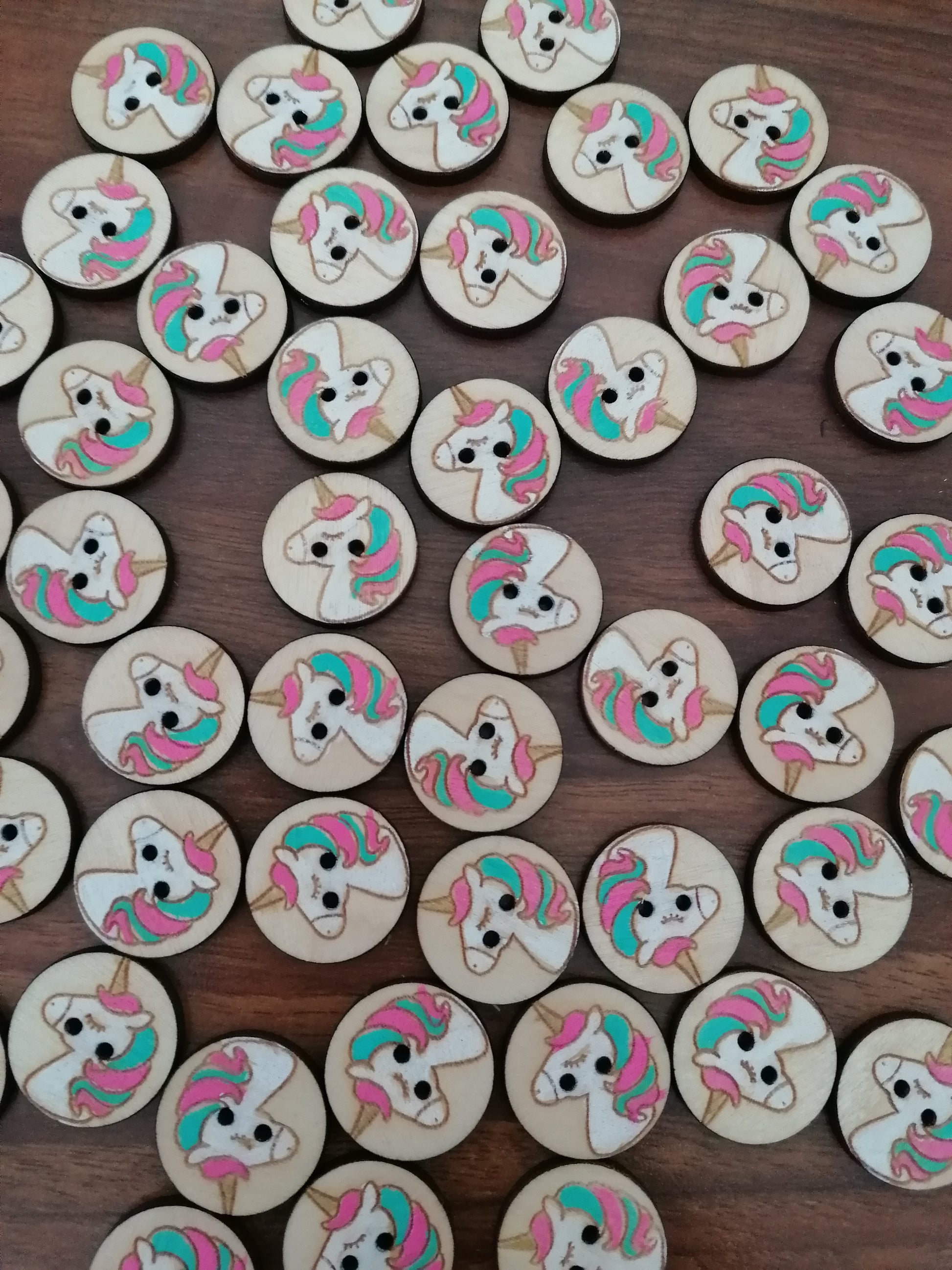 Nyt löytyy jokaiselle pienelle tai isommalle unicorn fanille neuletakkiin, paitaan tai ihan mihin tahansa puinen unicorn nappi. Nappi on kotimaista koivuvaneria ja sen halkaisija on 2cm.
